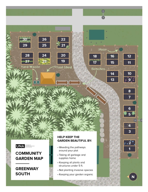 The community gardens are managed by the UNA, and supported by volunteer community garden committees.